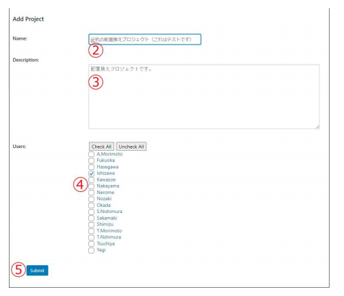プロジェクトの内容をデータ入力する