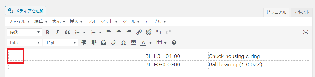 表に文章を入力する
