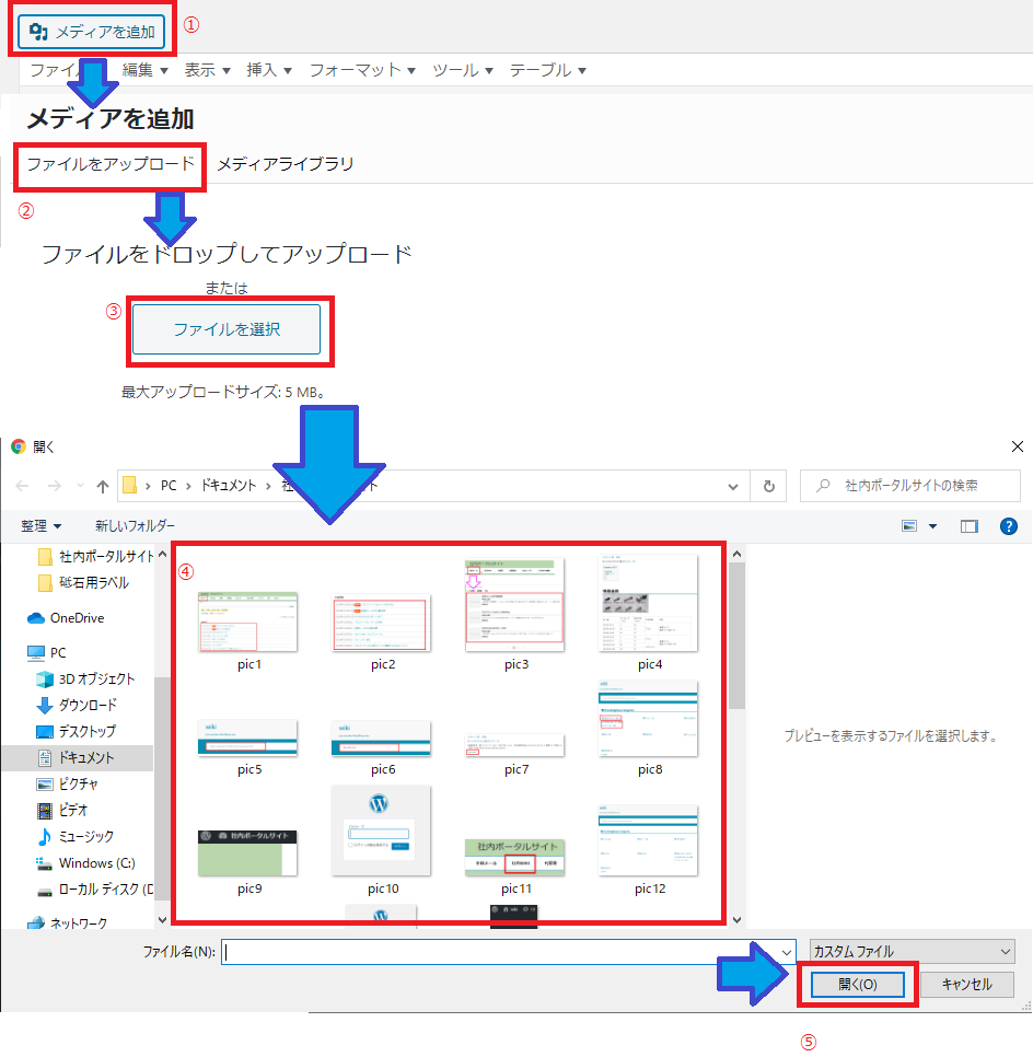 ④アップロードしたい画像を選択