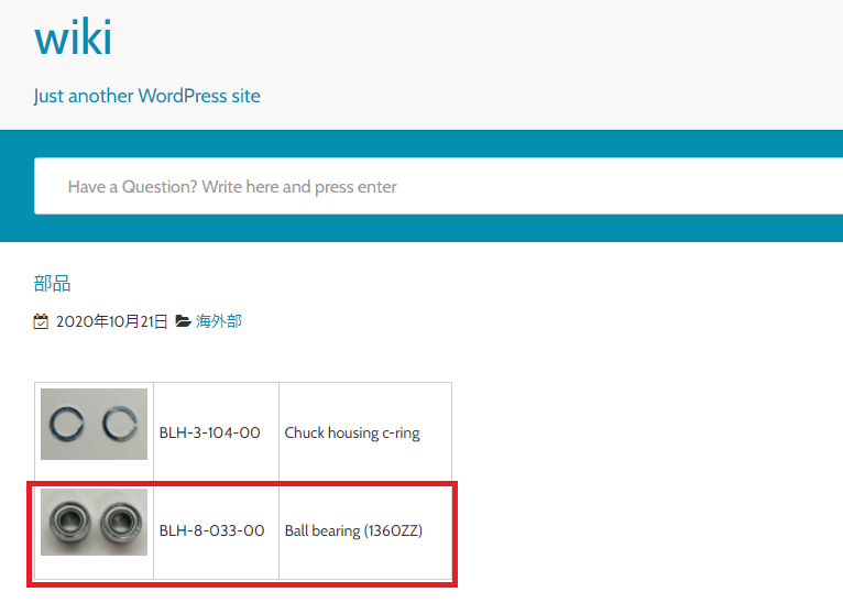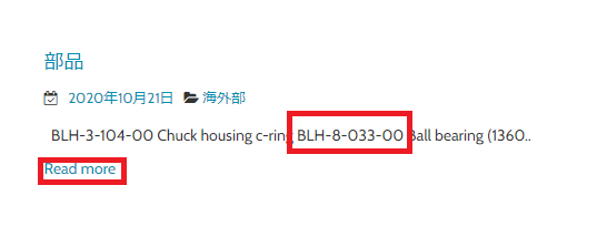 ここでは例として、ベアリングの「BLH-8-033-00」を検索してみます。