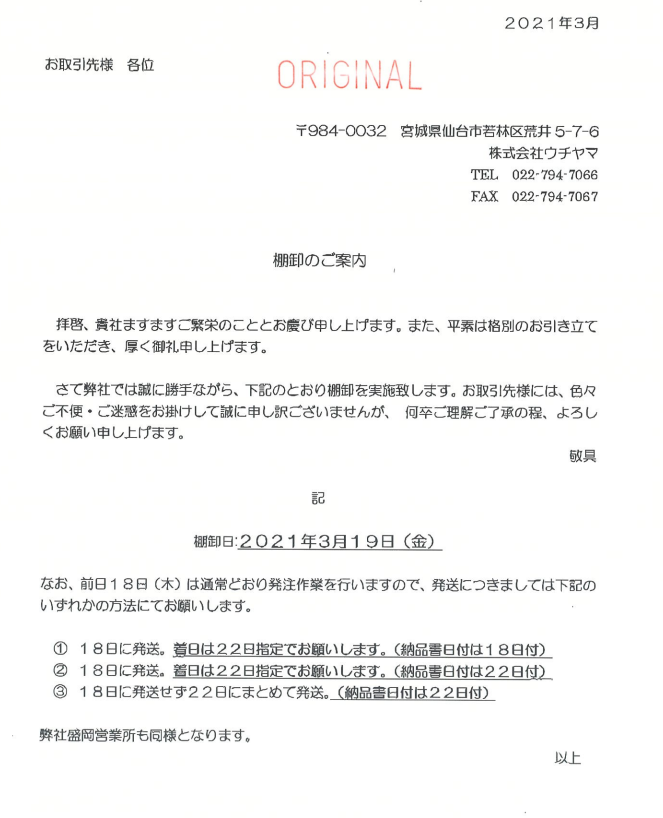【回覧】棚卸の案内(株式会社ウチヤマ)