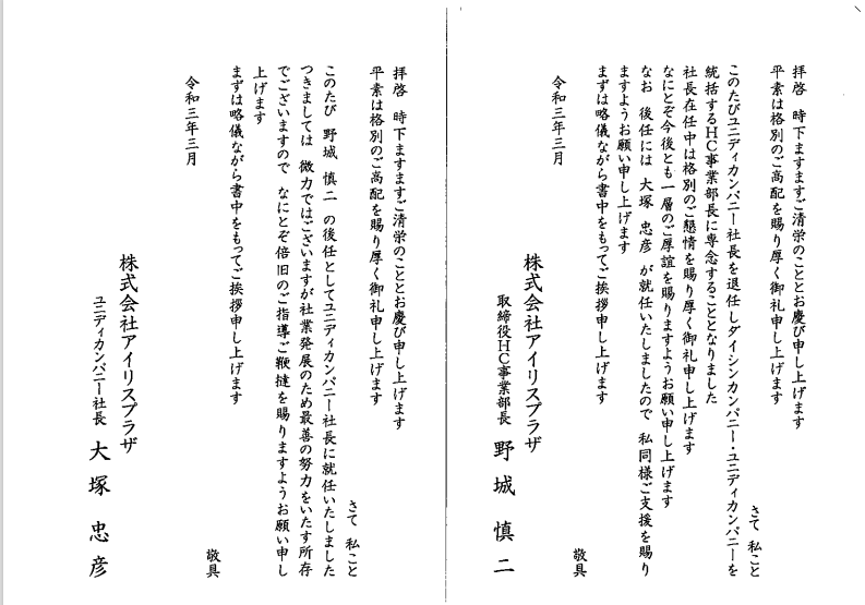 【回覧】役員人事のお知らせ(株式会社アイリスプラザ)