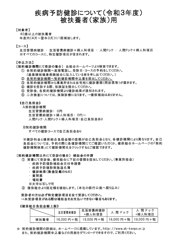 【回覧】疾病予防検診について(令和3年度)被扶養者(家族)用