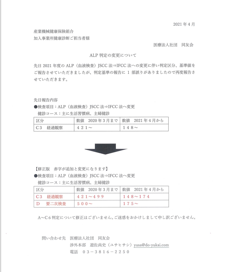 【回覧】血液検査の判定基準に誤植有り(医療法人社団 同友会)