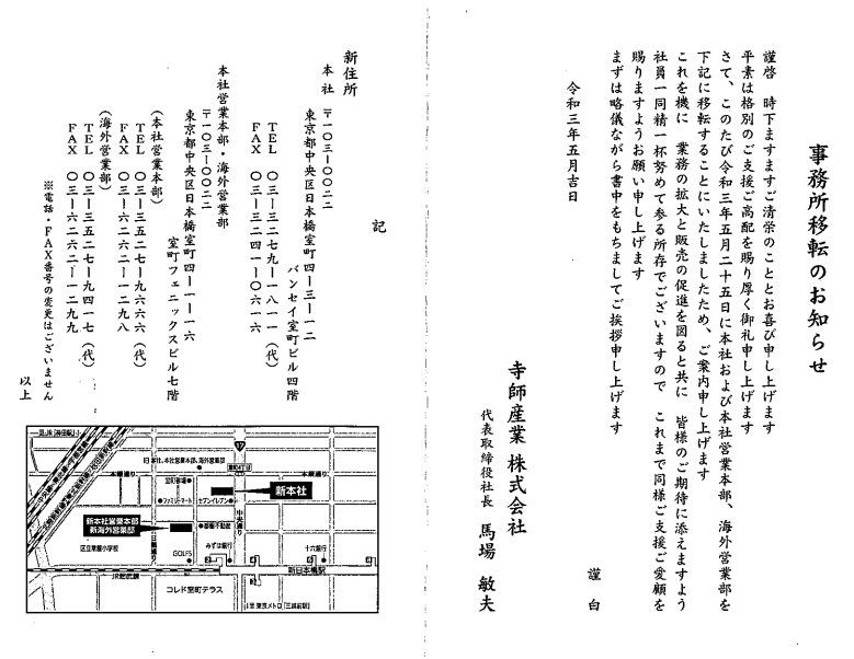 【回覧】事務所移転のお知らせ(寺師産業株式会社)