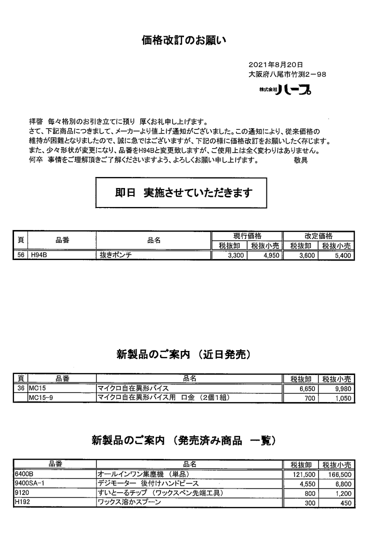 【回覧】価格改訂のお願い(株式会社ハープ)
