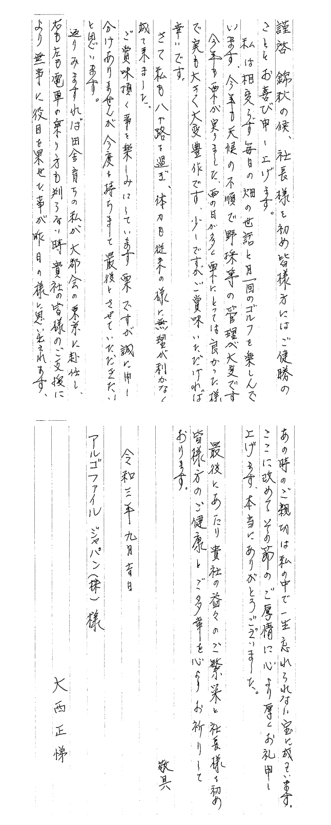 【回覧】お手紙(大西様)