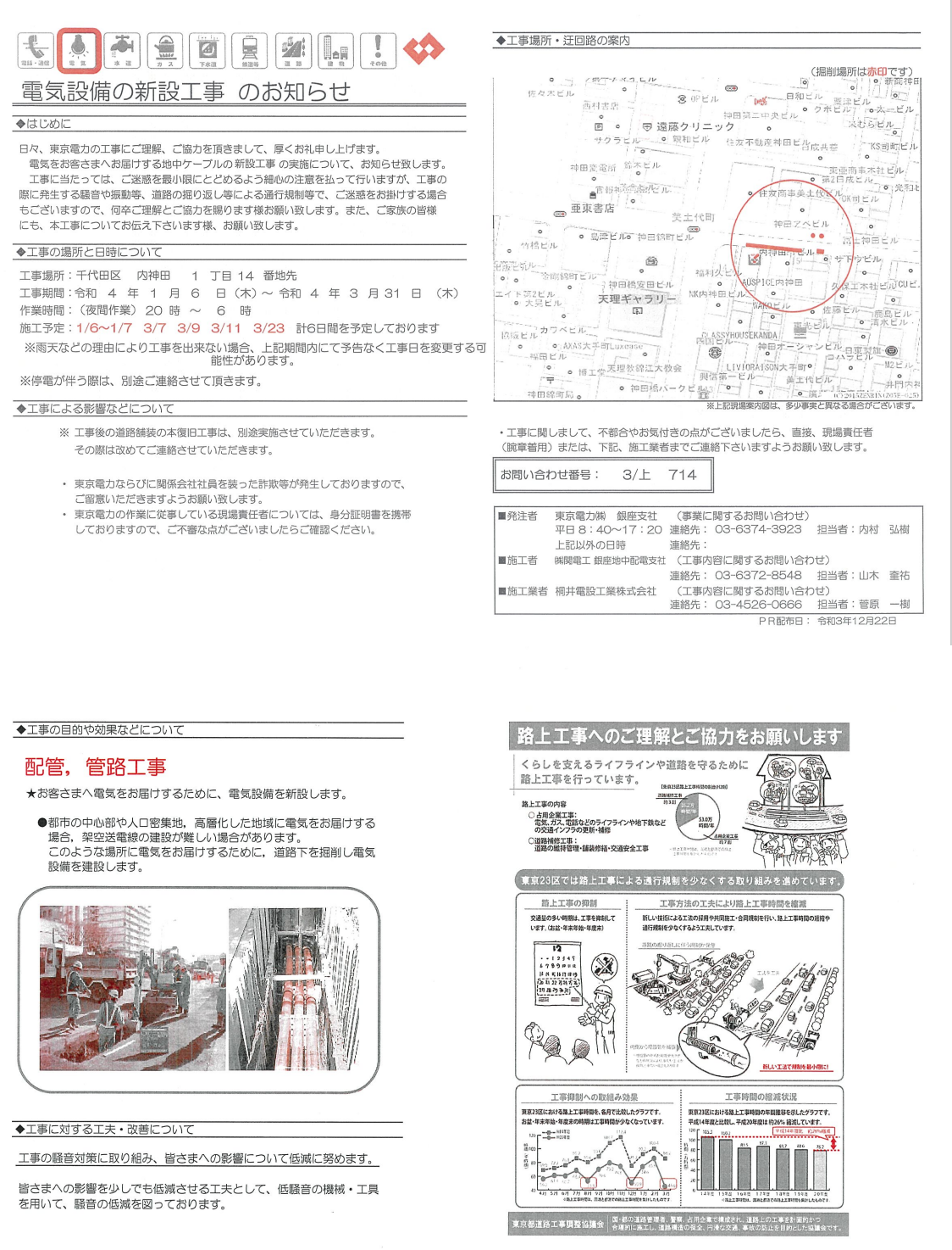 【回覧】電気設備の新設工事のお知らせ(東京都道路工事調整協議会)