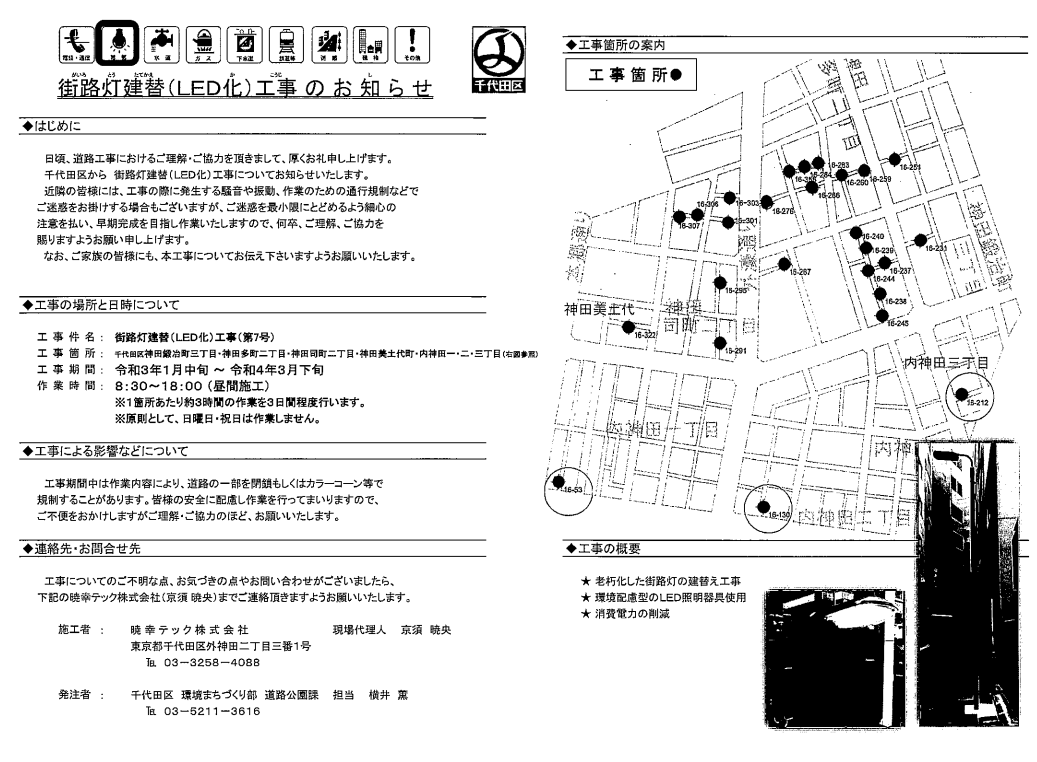 【回覧】街路灯立替(LED)工事のお知らせ(千代田区環境まちづくり部 道路公園課)