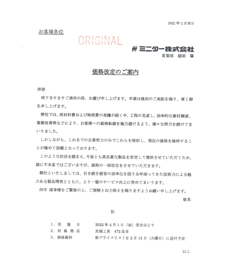 【回覧】2/14(月)午前 臨時休業のお知らせ(ミニター株式会社)