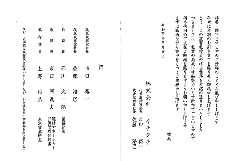 【回覧】役員人事のお知らせ(株式会社イチグチ)